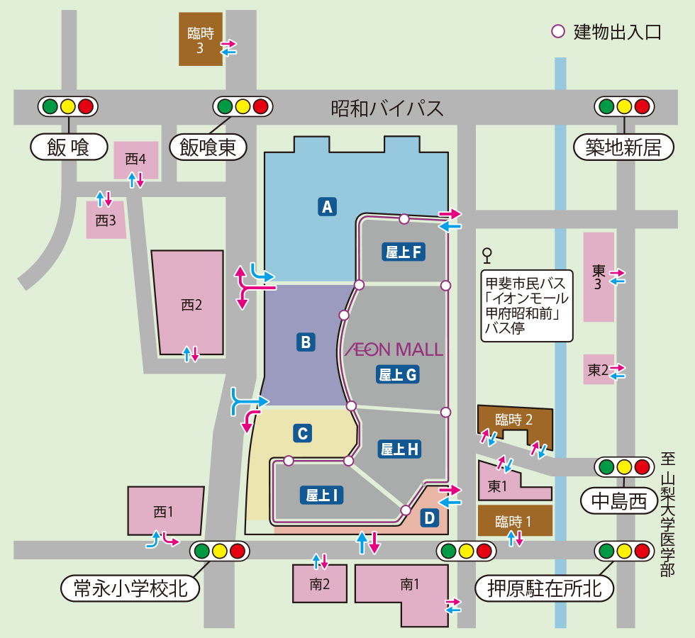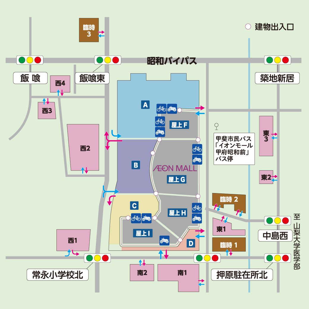 カーナビで検索の際は「昭和町飯喰(いっくい)1505番地1」と入力してください